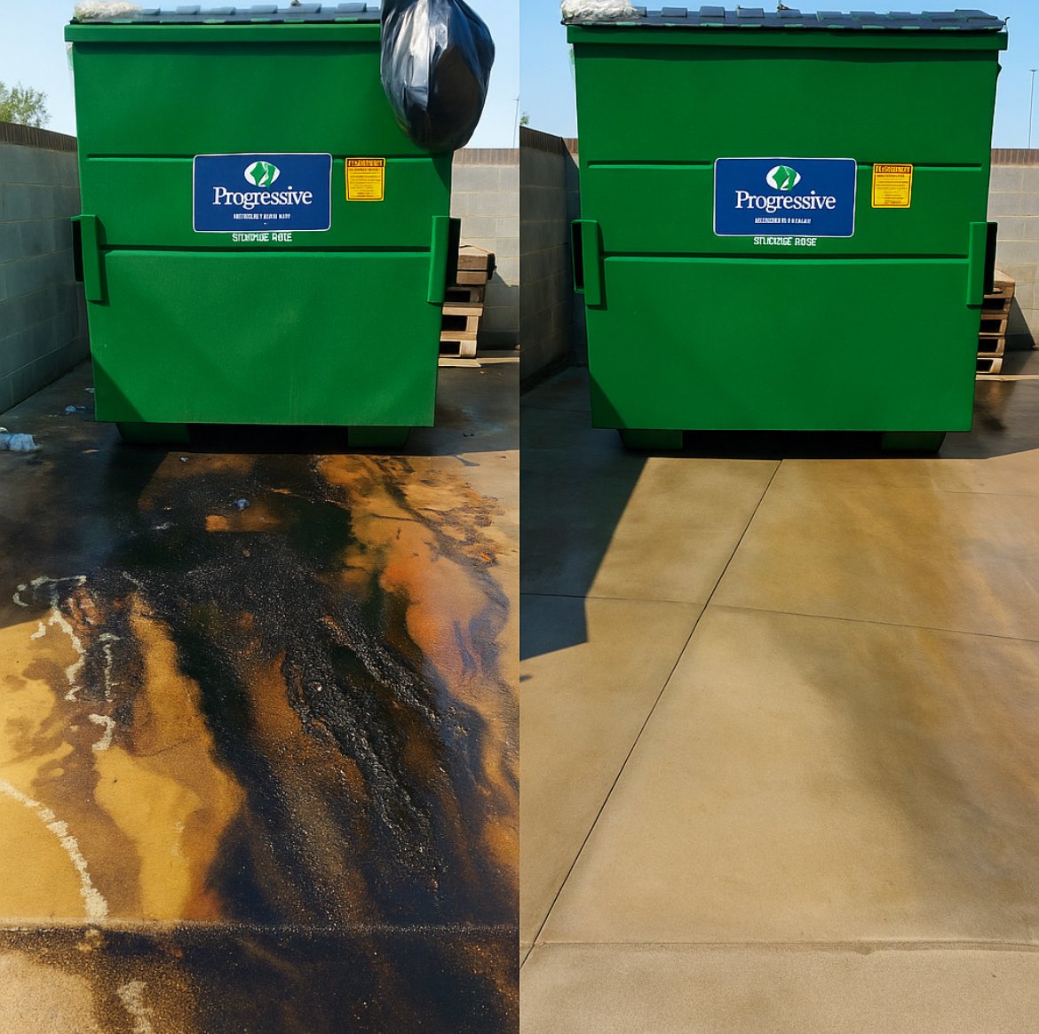 Our dumpster pad cleaning service removes grease, oil, grime, algae, and organic buildup to keep commercial properties clean, sanitary, and compliant. We begin by pre-rinsing the surface to remove debris and clear cracks so cleaning solutions can fully penetrate. We then apply a professional-grade mixture of surfactant, degreaser, sodium hypochlorite, and plant protectant, allowing proper dwell time to break down heavy contamination. After detailing edges, curbs, and joints, we finish with commercial surface cleaners in an overlapping pattern to ensure a uniform, streak-free finish. The result is cleaner, safer dumpster pads with reduced odors, staining, and slip hazards.